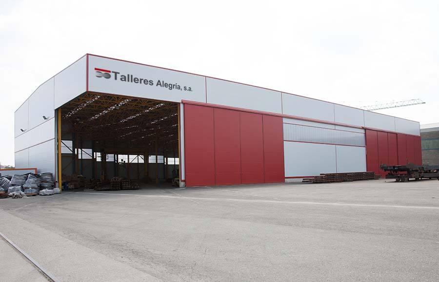 En Talleres Alegría, s.a. nuestras naves, situadas en el polígono industrial de Silvota (Llanera, Asturias), ocupan una superficie de 50.000² donde se ubican departamento de administración, oficina técnica, laboratorio de calidad, 50.000m² de zona de montaje, área de personal y almacenes de material. Contamos con los siguientes equipamientos: